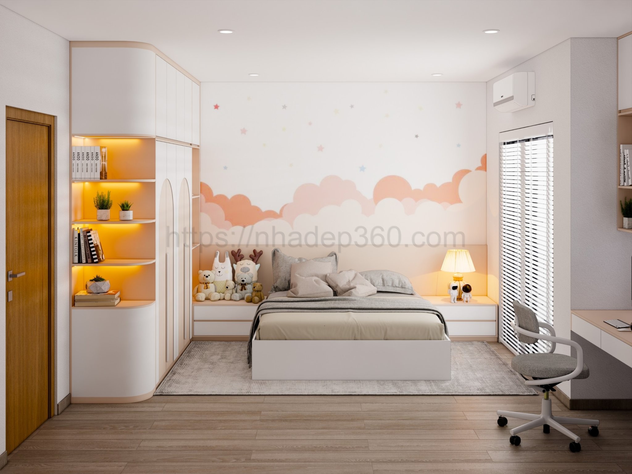 Ý tưởng: nhadep360.com thiết kế nội thất căn hộ 90m2 với phong cách Hiện đại, tông màu trắng sáng và gỗ sáng màu tạo nên không gian tinh tế, thoáng đãng và ấm áp. Sự kết hợp giữa đồ nội thất tối giản và các chất liệu như kim loại, kính, và gỗ tự nhiên mang lại vẻ đẹp hiện đại và gần gũi.