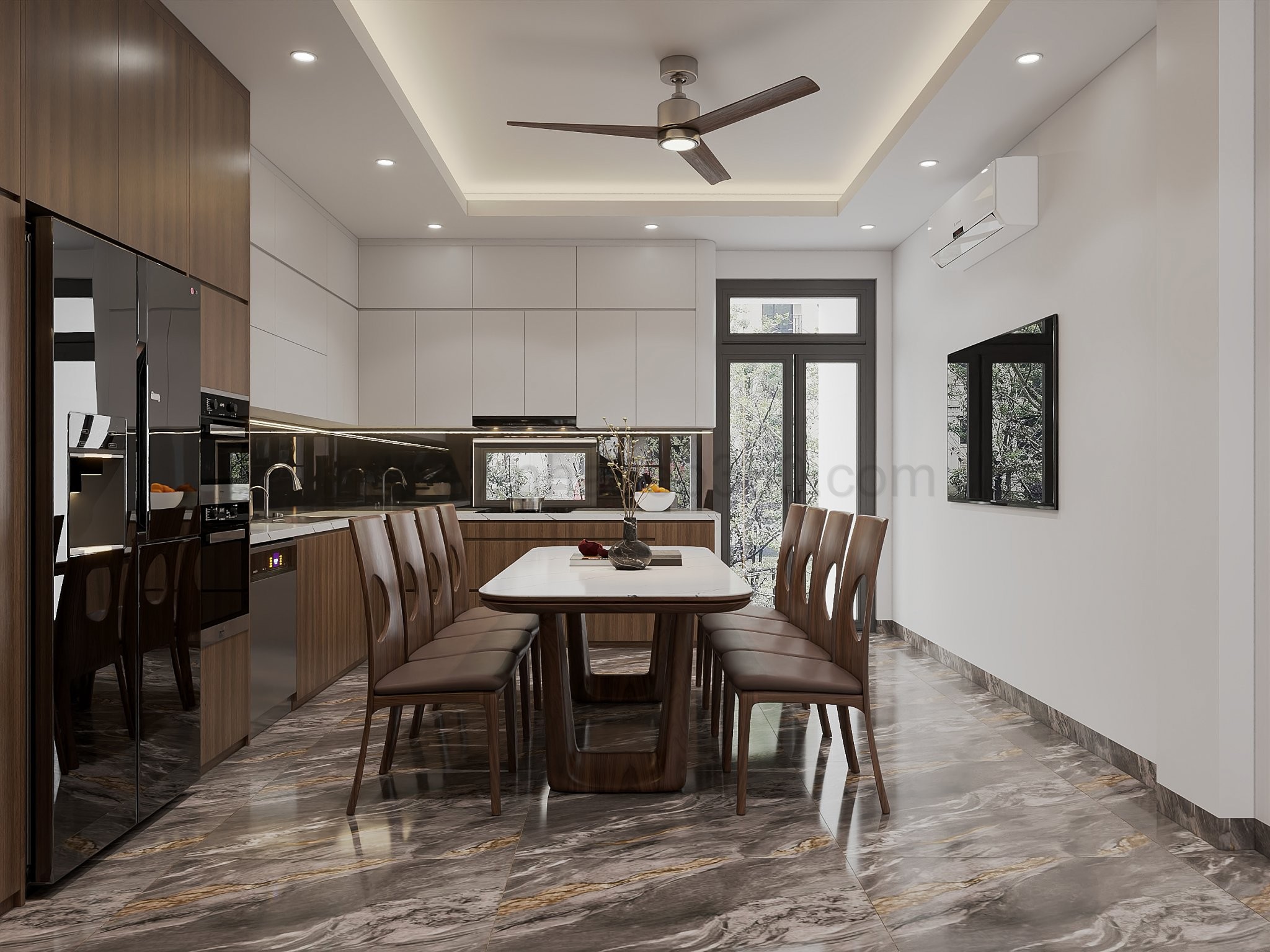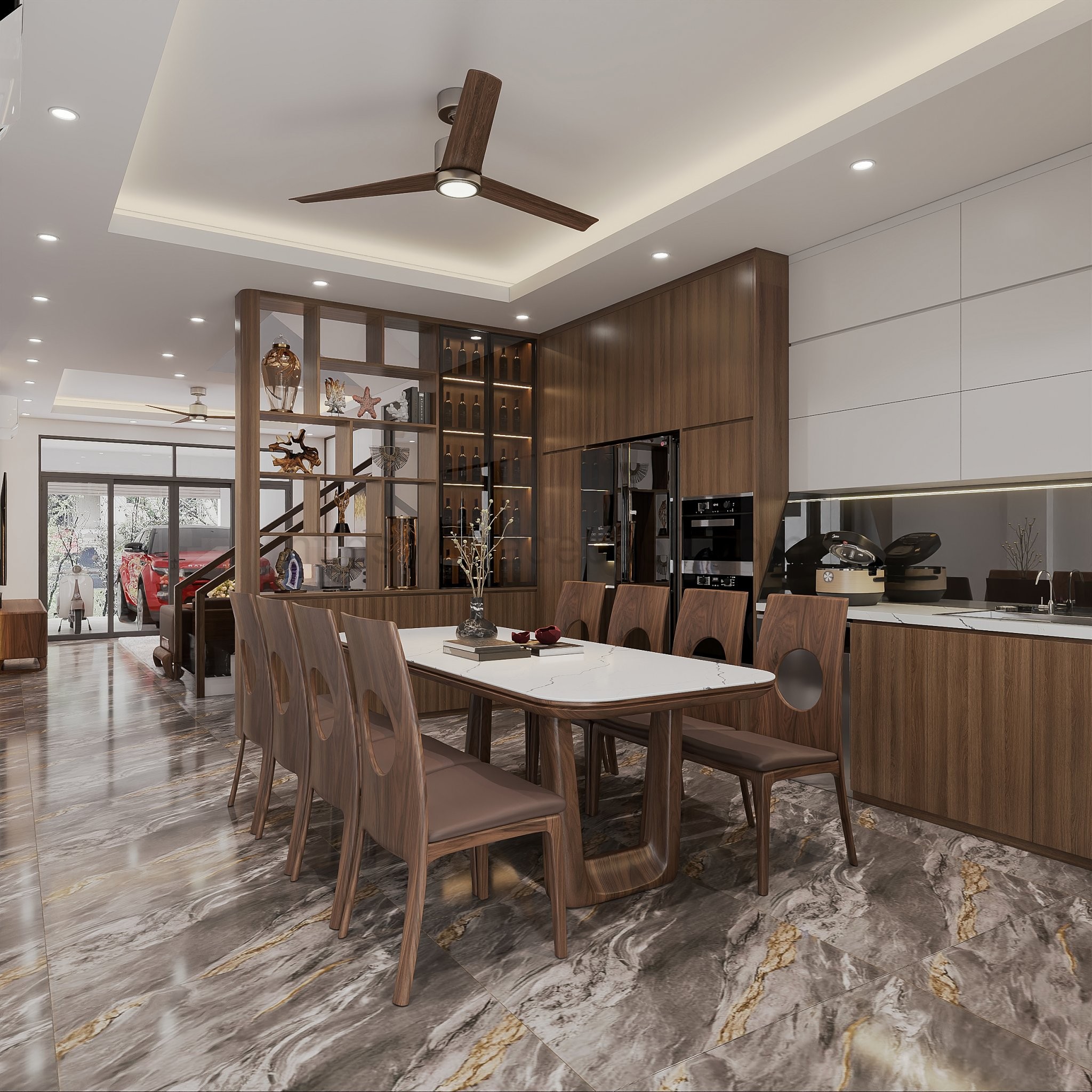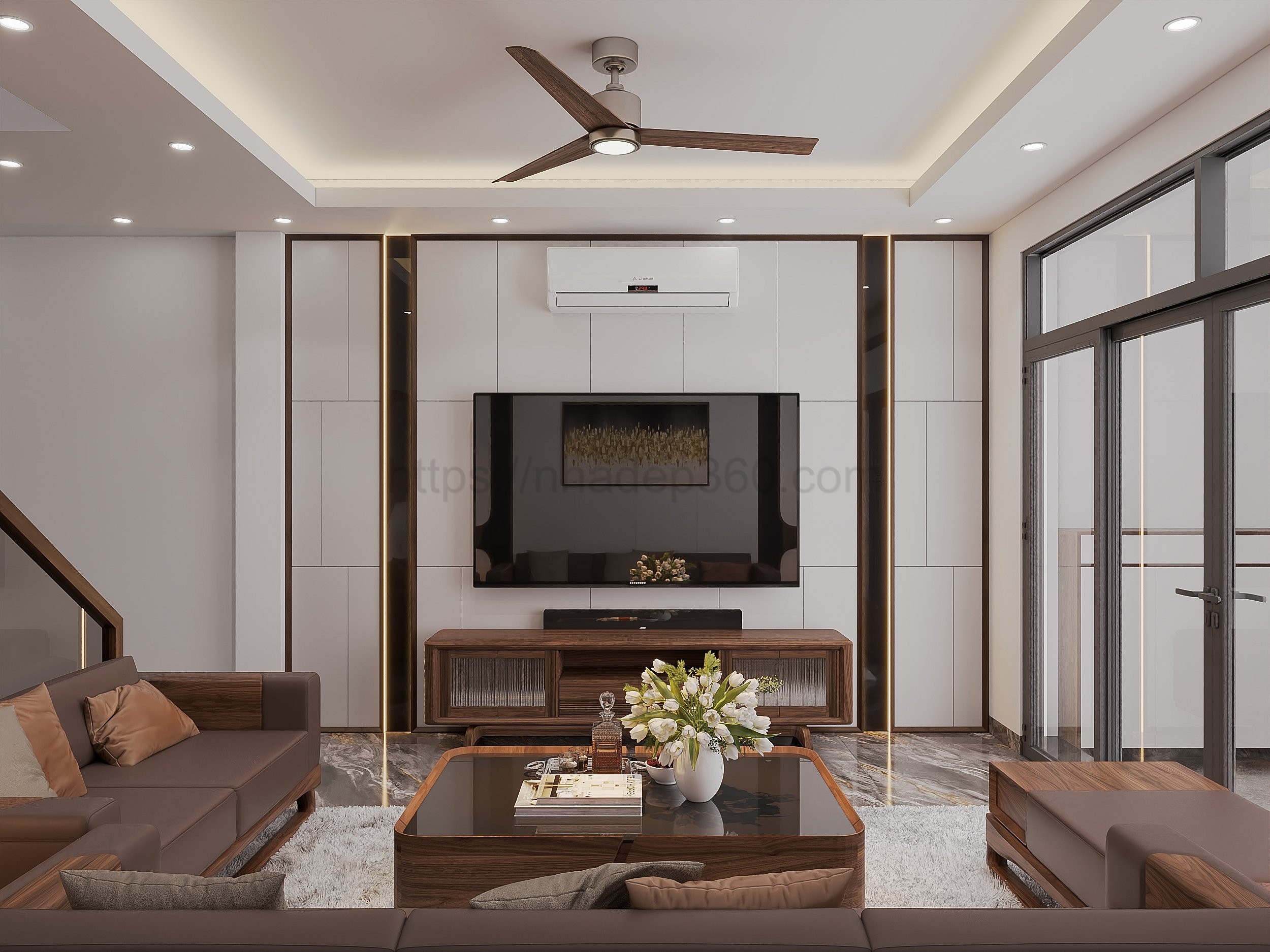 Ý tưởng: nhadep360.com thiết kế nội thất căn hộ 90m2 với phong cách Hiện đại, tông màu trắng sáng và gỗ sáng màu tạo nên không gian tinh tế, thoáng đãng và ấm áp. Sự kết hợp giữa đồ nội thất tối giản và các chất liệu như kim loại, kính, và gỗ tự nhiên mang lại vẻ đẹp hiện đại và gần gũi.